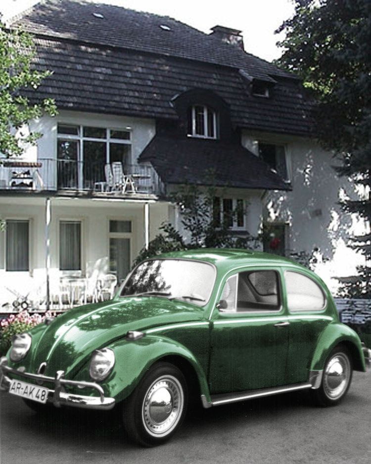 Der nagelneue VW-Käfer 1500 ccm und 44 PS für damalige Verhältnisse ein starker Motor. Sonderausstattung: Doppelte Stoßstangen, dezente Weißwandreifen und Stahlschiebedach. Mein Traumauto.